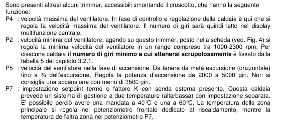 - Gli ho chiesto se si poteva regolare la potenza del bruciatore in accensione e mi ha detto che é meglio non toccare i vari numeri dei giri del ventilatore perché poi si sfasa la CO2 (chiederò all’altro tecnico, che invece mi aveva anticipato la possibilità di farlo);