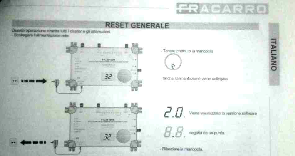 stef99 Inserito: 10 novembre 2024 Segnala Inserito: 10 novembre 2024 Avrei necessita' di fare il reset sul Filtro , in quanto lo dovro' usare soltanto come funzione " miscelatore antenne " quindi senza filtrare ne amplificare le entrate. Non ho pero' capito bene la sequenza del reset....perche' dice sopra di staccare la spina....e poi dice finche' l'alimentazione e' collegata.... La sequenza non mi e' chiara....un aiuto ? grazie.. scusate la qualita' della foto..