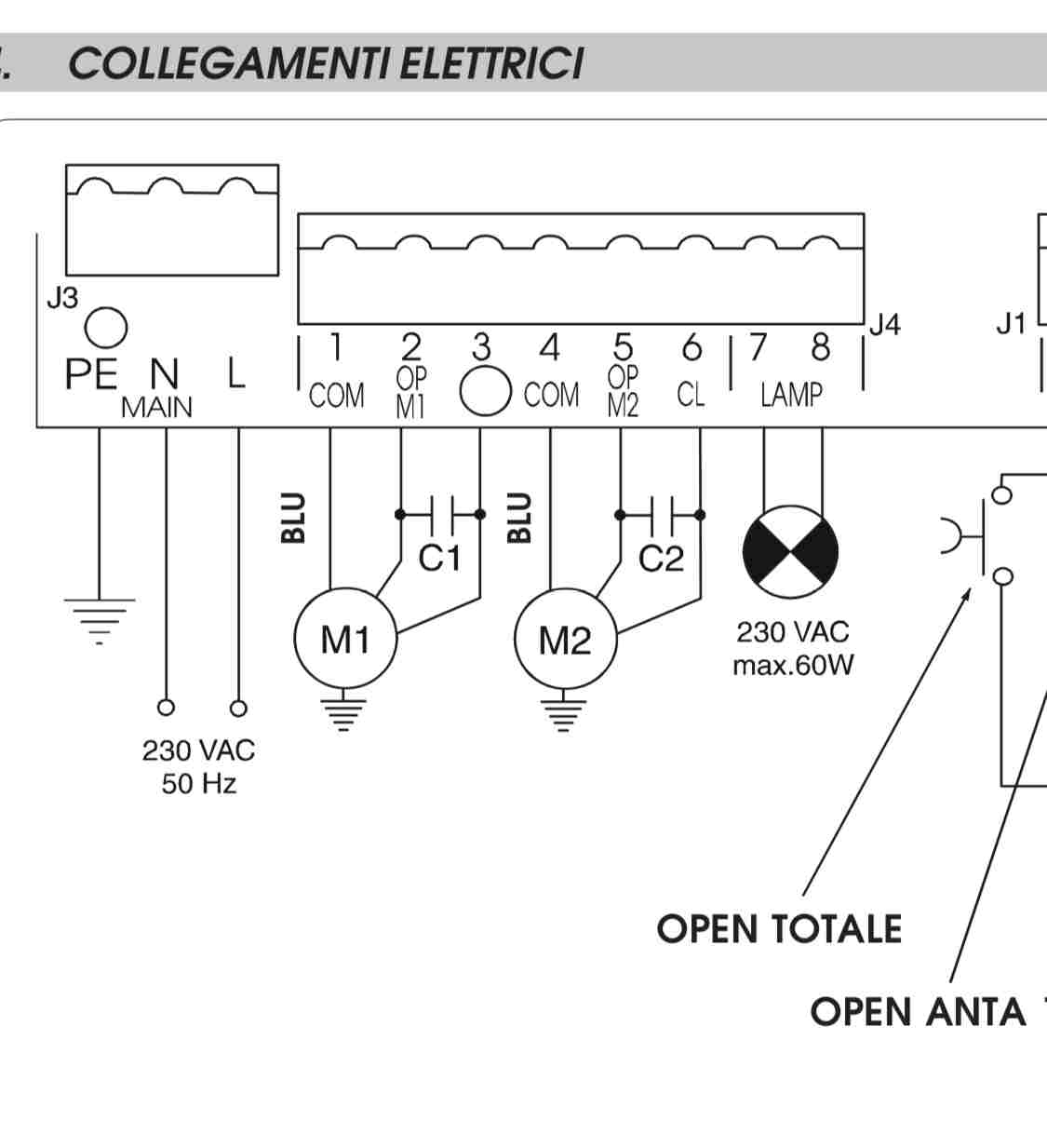 ROBY 73 Inserita: 21 novembre 2024 Segnala Inserita: 21 novembre 2024 (modificato) 10 ore fa, Gixxo ha scritto: Sulle prime l'anta non si muove e il motore NON emette ronzio, poi ad un certo punto si muove l'anta molto lentamente e rimane aperta a metà Eventualmente prova ad invertire i motori in centrale e vedi se si inverte il problema o rimane nello stesso motore, però prima sblocca i motori e portali a metà corsa in modo che le ante non si incastrino tra loro se sono una sovrapposta sull'altra. Controlla anche i finecorsa ed i collegamenti degli stessi che non siano rotti, difettosi o collegati malamente, sempre che sia la versione di 415 con i finecorsa, casomai posta delle foto 10 ore fa, Gixxo ha scritto: Cerco i condensatori per leggerne le caratteristiche ma non li trovo o meglio non sono più all'interno della cassettina assieme alla scheda,.... Attenzione che non siano all'interno dei motori stessi, nella scatola della morsettiera. Comunque, sono da 8 microFarad / 400V cod. 7601351 Modificato: 21 novembre 2024 da ROBY 73
