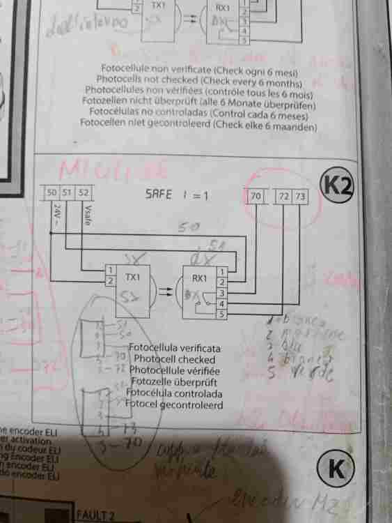 Filmec Inserita: 10 gennaio Autore Segnala Inserita: 10 gennaio Buonasera. Funziona tutto, ma non funzionano le fotocellule. Non funzionano ne in apertura ne in chiusura. Di attivarsi si attivano, perché al passaggio sento il rele scattare. I dubbi che avevo sono due, i morsetti ponticellati numerati dal 70 in poi, come si vede in foto allegata, vanno tolti la dove ho inserito dei miei fili, ovvero, come da manuale e foto allegata i numeri 70 72 73? L'altro dubbio é il settaggio dei Param: ho inserito alla voce "SAFE1" tutti i valori, e con i numeri 1, 2, 3 5, e 6 la centralina da errore; mentre con i numeri 0 (di default) e 4 il cancello apre/chiude ma le fotocellule non comandano nulla. Ovviamente ho controllato i collegamenti e sono come da manuale. Anche in questo caso: boh. Sapete cosa c'é che non va? Grazie in anticipo.
