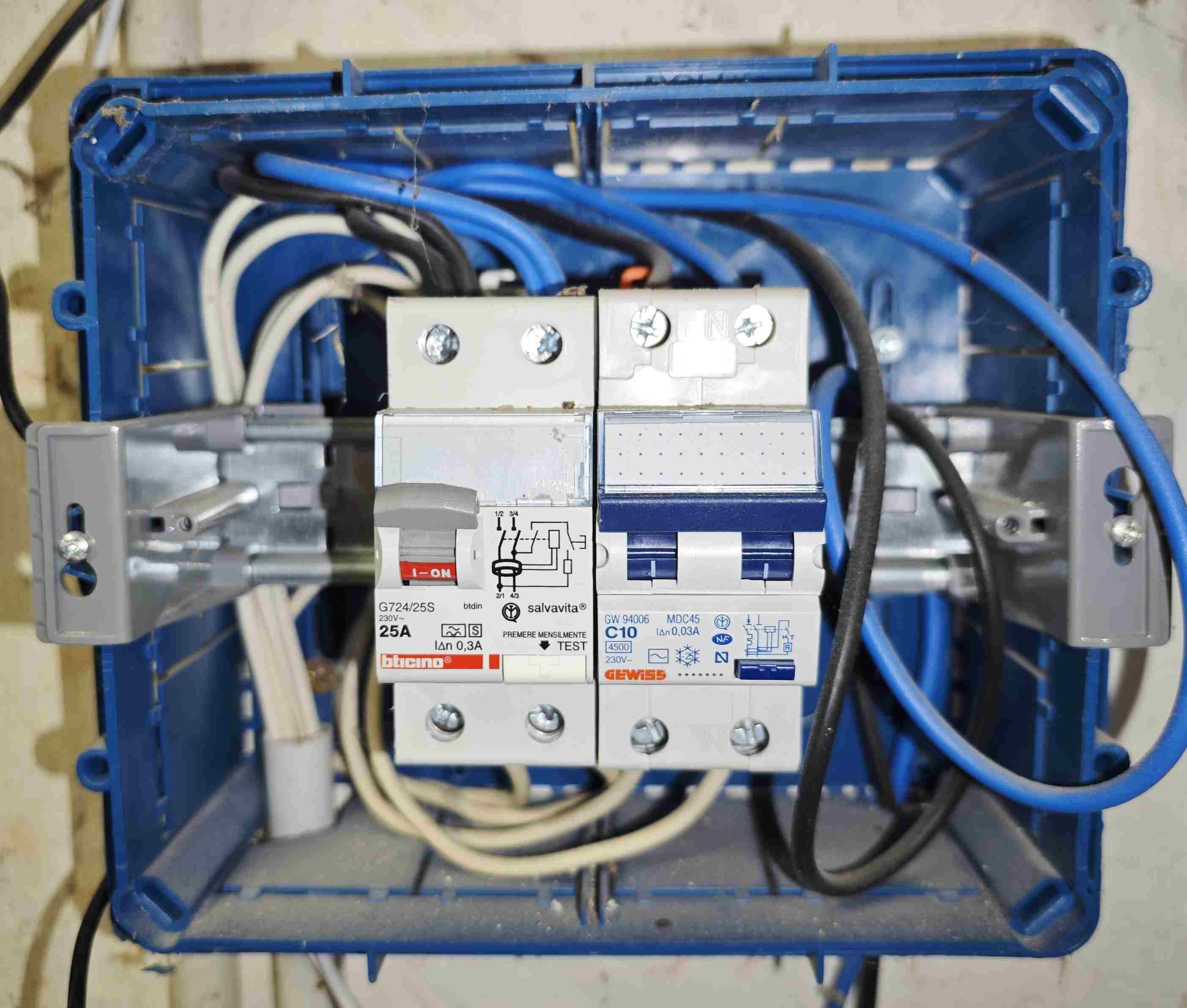 Steganos Inserita: 20 gennaio 2025 Autore Segnala Inserita: 20 gennaio 2025 Provo a dare una descrizione di cosa c'è collegato. Al piano terra ci sono principalmente 2 congelatori in funzione tutto l'anno e una lavatrice, vorrei portare una nuova linea per un piccolo laboratorio di falegnameria. Al primo piano c'è un appartamento che viene usato ogni tanto e ci sono i classici elettrodomestici con anche 2 ups che sono sempre in funzione 1 ora fa, ivano65 ha scritto: compera un MTD da 16A 30.ma e sostituisci il differenziale a sinistra esistente e sei apposto. il quadro quanto dista dal contatore? potresti acquistare un magnetotermico 25A e riutilizzare il differenziale che sostituisci. non avrai selettivita' differenziale essendo di tipo istantaneo. un selettivo costa comunque molto. Il quadro è a 30cm dal contatore