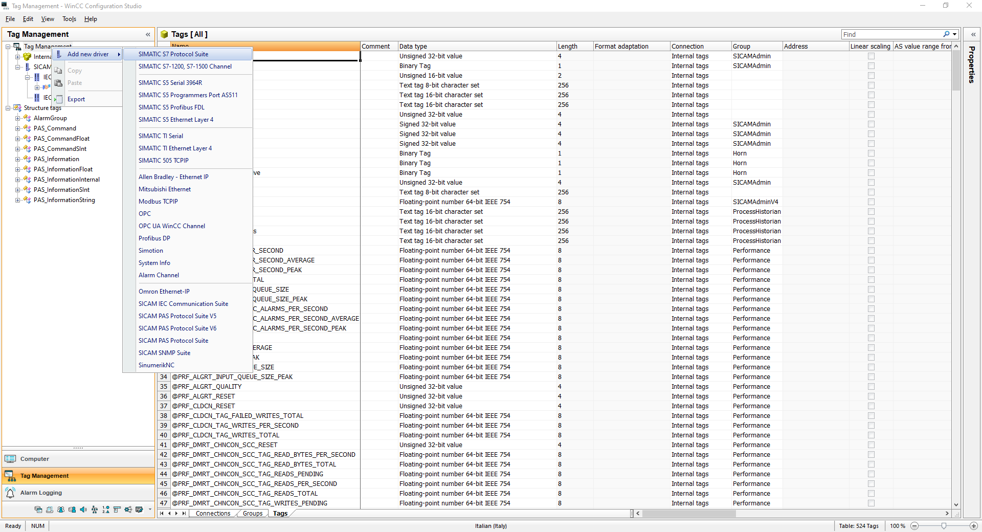 dina_supertramp Inserita: 25 marzo Segnala Inserita: 25 marzo (modificato) 43 minuti fa, southofsanity ha scritto: Ciao, si e presente un plc siemens serie 1500 che gira la lettura del bar code ad un tp700 remoto. ora dovrei verificare il perche non legge sullo scada e non so come e il perche non valorizza le variabili se e un problema di driver o altro. Sullo scada non riesco a trovare dove le valorizza se c'è uno scripto altro Ok, quindi il 1500 parla con un TP700 e li le variabili le vedi correttamente. Ripeto, cosi via forum non è facile se non hai mai messo mano su WinCC SCADA, ma ci provo. Apri WinCC Explorer mentre il runtime gira, apri il "Tag management" (mi pare che in italiano si chiami "Variabili di progetto"), cerca di trovare il driver di comunicazione del lettore nell'albero a sinistra, una volta trovato selezionalo e vedrai che la tabella si popola della tag usate in quel driver. Nella tabella cerca la colonna "Quality tag", se non la vedi, abilitala nella visualizzazione (click sx su di una colonna, visualizza/nascondi) Cerca di capire quali sono le tag che non vengono popolate e vai a vedere il loro quality code. Quality Codes of Tags - SIMATIC HMI WinCC V7.5 WinCC Information System - ID: 109762744 - Industry Support Siemens Cosi dovresti capire qual'è il problema (comunicazione, valore non valido o altro) Apri WinCC Explorer, vai su "cross reference" (riferimenti incrociati) Inserisci le tag che ti danno problemi e vedrai dove vengono usate (script, pagine, liste, ecc.) Cosi dovresti riuscire a vedere dove vengono manipolate/usate le tag Cosi a naso secondo me è un errore di comunicazione, se a smesso di funzionare all'improvviso. Gli script "non si ammalano"....le comunicazioni si (cavi, indirizzi, firmware, driver, firewall, ecc.) Modificato: 25 marzo da dina_supertramp