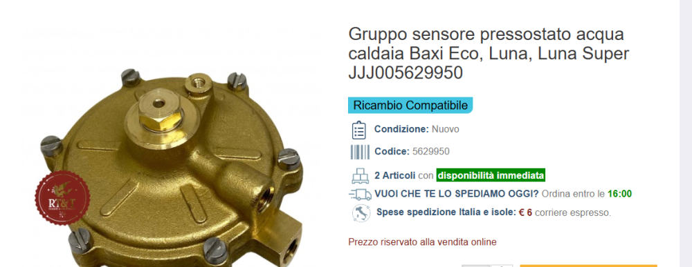 I.Gianluca Inserito: 3 aprile 2025 Segnala Inserito: 3 aprile 2025 Buonasera a tutti, come da oggetto. Caldaia a metano Baxi installata nel 2007, la valvola a tre vie e il pressostato non sono mai stati sostituiti. Qualche mese fa ho sostituito lo scambiatore secondario (a circa 6 anni dalla sostituzione precedente). Ho un addolcitore. Mi sono accorto del difetto solo negli ultimi giorni, perché immagino, la temperatura di casa è superiore rispetto al minimo impostato a termostato. Ho notaio che la caldaia faceva fatica a raggiungere i 42 gradi impostati per l'acqua calda sanitaria; raggiungeva abbastanza rapidamente i 36/37 gradi (la Baxi ha un regolatore elettronico con display) e solo dopo qualche minuto saliva fino a 42 e da lì in poi continuava a mantenere regolarmente la temperatura. Nessun errore, nessun blocco, nessun calo di flusso idrico. Comportamento tuttavia inusuale rispetto al solito. Mi sono poi accorto (avendo letto sul forum di un difetto simile accaduto a un altro utente) che il radiatore, anziché freddo, dopo la richiesta di acqua calda sanitaria diventava tiepido. Ho avuto una esperienza di riparazione con una caldaia Immergas Eolo mini del 2003 nella quale ho sostituito il corpo valvola centrale oltre ad altre parti di ricambio che si erano guastate a causa di un lunghissimo periodo di inutilizzo. Nella caldaia Baxi, vedo tuttavia che, alla Valvola a tre vie (codice 5658690), è collegato un "gruppo sensore pressostato" (che dovrebbe essere identificato dal codice 5629950, se qualcuno potesse verificarlo gliene sarei grato). Poiché si tratta della caldaia che serve attualmente casa e la mia famiglia, ci sarebbe la necessità di risolvere il guasto al primo tentativo (una volta acquistate le relative parti di ricambio) 😉 Su un sito web ho trovato il gruppo valvola 3 vie + il sensore pressostato compatibili (tutto assieme codice 5646210) a circa 120 euro. Viceversa per la valvola 3 vie + pressostato originali Baxi pare occorra spendere circa 210/250 euro. So che esiste la possibilità di revisionare l'una o l'altra acquistando il relativo kit (di cui non ho i codici). Vi domando tuttavia se si tratti o meno di un difetto che coinvolga potenzialmente entrambi i componenti e quali siano i vostri consigli in merito. Nel caso consigliaste la revisione, la riterreste eseguibile anche da un non addetto ai lavori un po' amante del bricolage? Grazie, saluti.