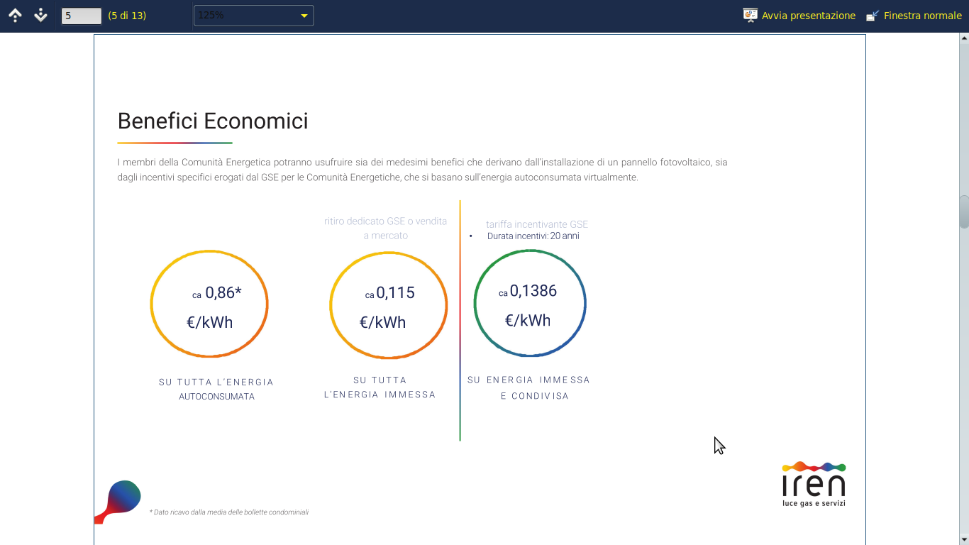 reka Inserita: 25 aprile 2025 Segnala Inserita: 25 aprile 2025 quella stima va riportata alle bollette reali del condominio. l'ideale in questi casi sarebbe avere un monitoraggio dei consumi ma non sempre è possibile. comunque con la fine sello scambio sul posto le comunità energetiche sono quelle più incentivate.