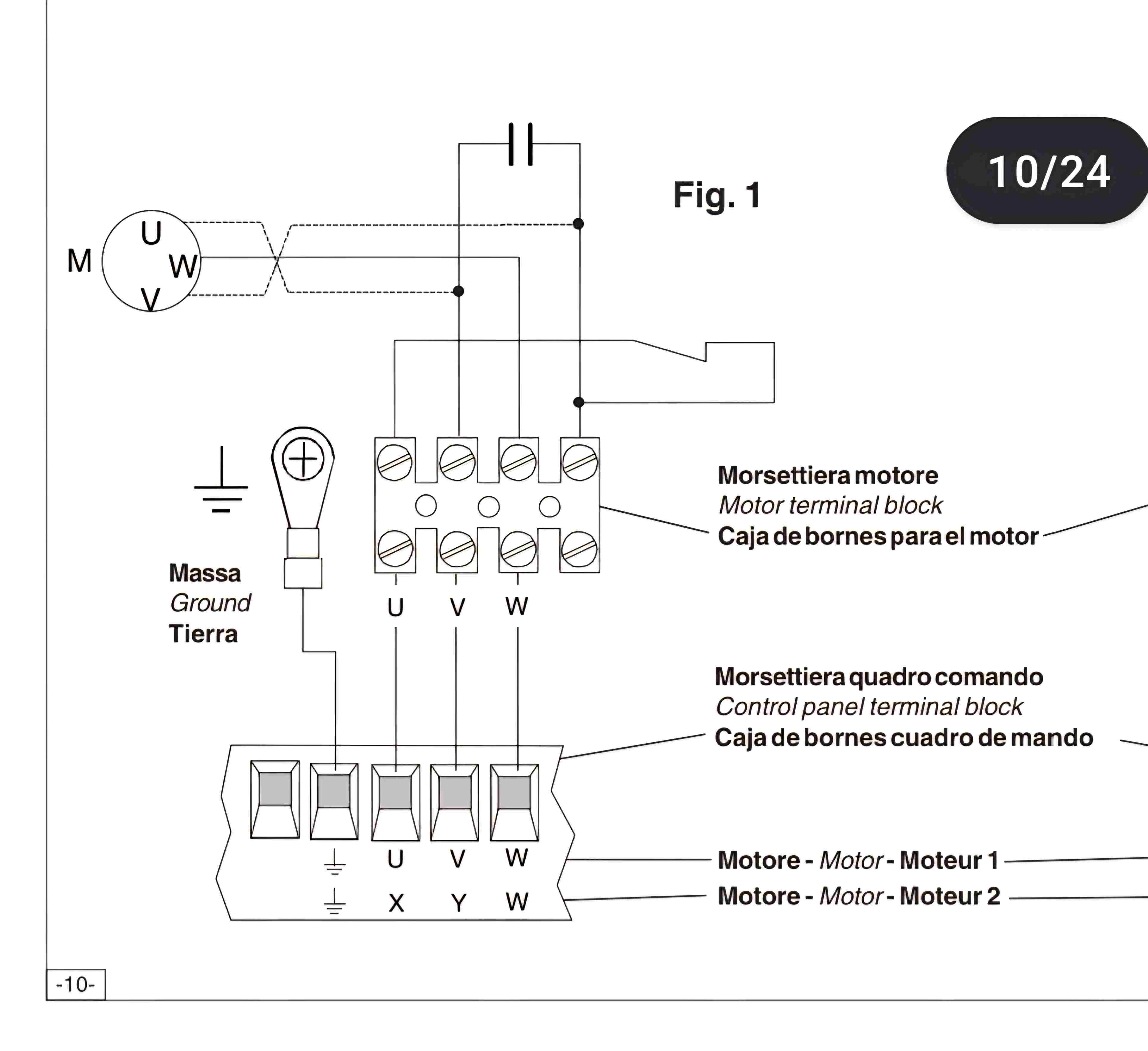 ROBY 73 Inserita: 26 giugno Segnala Inserita: 26 giugno 8 ore fa, MatteoDv05 ha scritto: uno dei collegamenti che penso di non star facendo correttamente è quello dei Finecorsa, ti inoltro come li ho collegati. Il "2" del finecorsa l'ho collegato al terminale libero della morsettiera del motore, mentre FA2, l'ho collegato al terminale "U" della morsettiera del motore.......... Ma, mi spieghi perché sei andato a complicarti la vita e soprattutto a scollegare il finecorsa che è già collegato correttamente dalla fabbrica direttamente sul motore? Per forza ti si bruciano le schede, in questo modo hai dato 230V (o comunque la tensione in uscita dal motore, oltretutto in aggiunta "condita" dalla scarica del condensatore del motore), direttamente nel circuito di comando a bassissima tensione (24V). Lasciali perdere quei morsetti dei finecorsa nella scheda, ponticellali tutti con il morsetto 2 (che è sempre la cosa migliore), oppure escludili attraverso il dipswitch B1 in OFF. Se proprio volessi usare i contatti dei finecorsa della scheda, dovresti installare dei finecorsa separati da quello del motore in modo che vadano a toccare direttamente l'anta al momento dell'apertura e della chiusura collegandoli solo sui morsetti 2-FA2 e 2-FC2, ponticellando poi 2-FA1 e 2-FC1 che non usi avendo una sola anta.