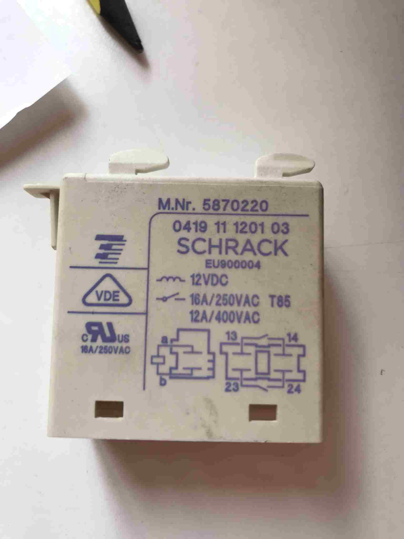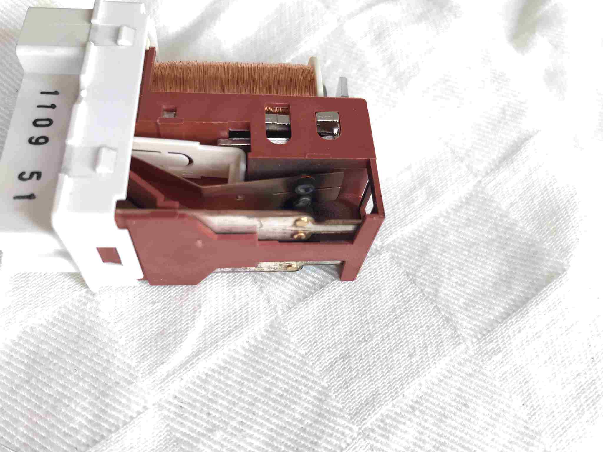 Tevram Inserita: mercoledì alle 14:08 Autore Segnala Inserita: mercoledì alle 14:08 A distanza di 3 settimane ho voluto riprovare la lavastoviglie con programma Leggero + turbo per una durata di 1h 12min. L'errore è comparso quasi alla fine, mancavano 5 minuti e le stoviglie erano lavate ed asciugate. Ho aperto sotto e individuato il modulo relè che, se è quello, trattasi di un solo relè, allego foto. Aprendo il modulo noto che entrambi i contatti sono sfiammati. Potrebbe essere quello il problema? Con il codice 5870220 si trovano relè usati a pochi euro e qualche nuovo a 100€, sono affidabili quelli usati?
