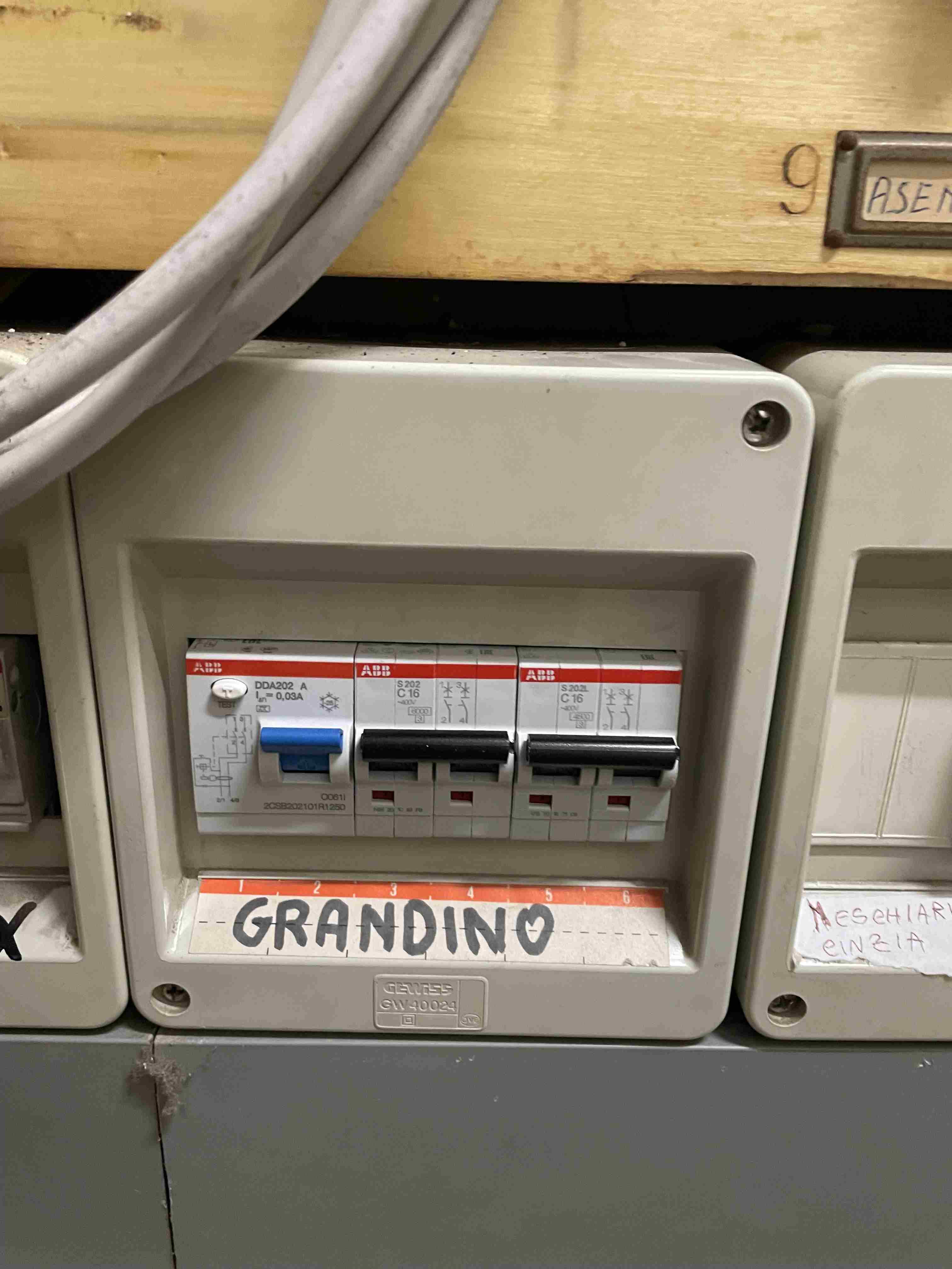 Di quelli dove c’è scritto “Grandino”, quello a destra è quello del garage, mentre a sinistra c’è il blocco differenziale e magnetotermico.