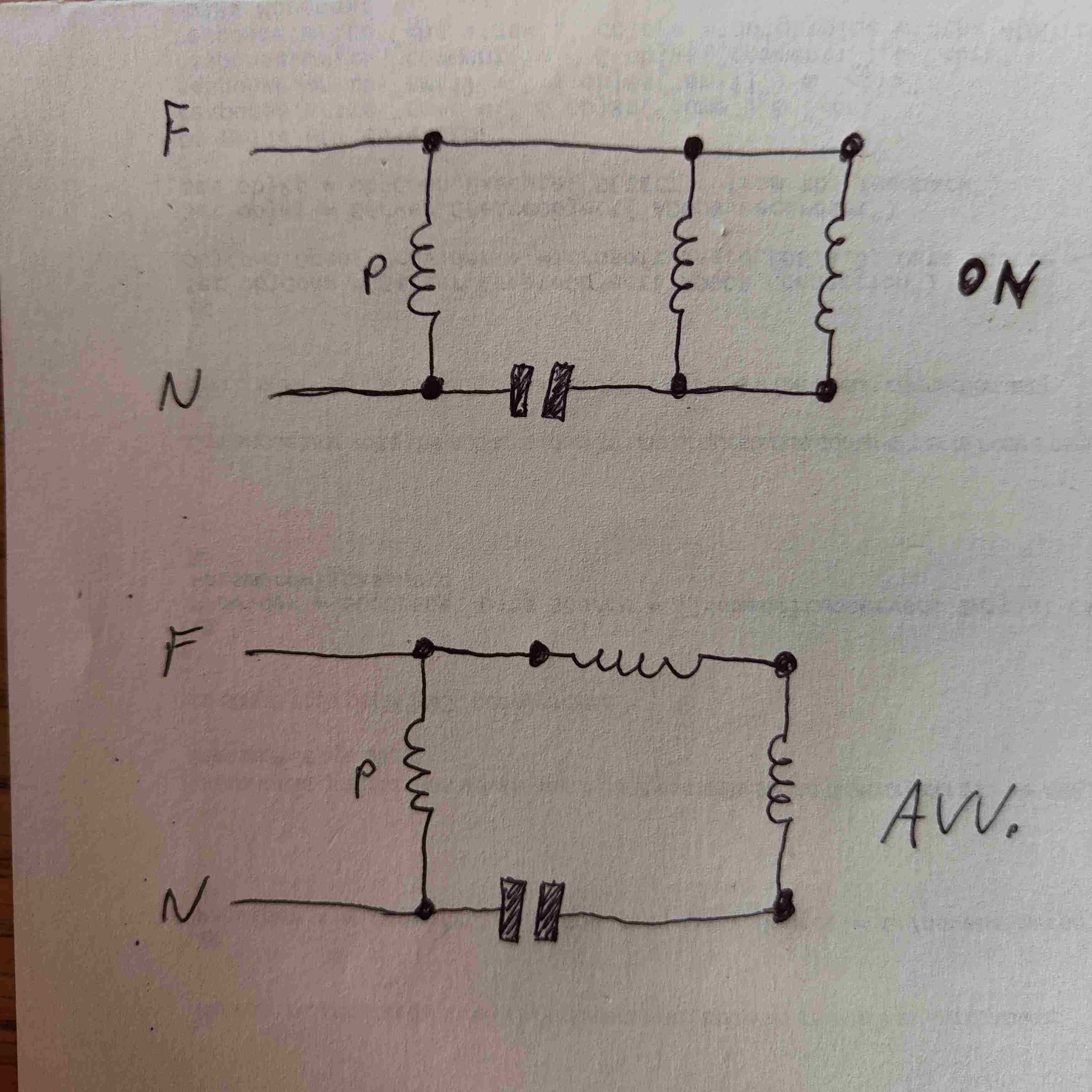 a321680 Inserita: 10 ottobre Segnala Inserita: 10 ottobre Il 4/10/2025 alle 15:51 , Wollys ha scritto: Sicuramente ha tre avvolgimenti, uno primario e due secondari. Domani forse ho un po di tempo per provarlo, cosa dite se lo collego cosi come nella foto in allegato ? P è l'avvolgimento principale e gli altri due secondari. Se questo è lo schema del motore, hai un motore che è progettato per alte coppie di spunto, appunto quelle necessarie per una sega circolare, con un appropriato commutatore inserisci gli avvolgimenti durate lo spunto in serie con una posizione instabile, rilasciata questa posizione il commutatore passa il collegamento in parallelo degli avvolgimenti per far marciare il motore in lavoro, questo motore è una ferrari dei motori monofasi, io conosco il brand Lafert con questo schema.