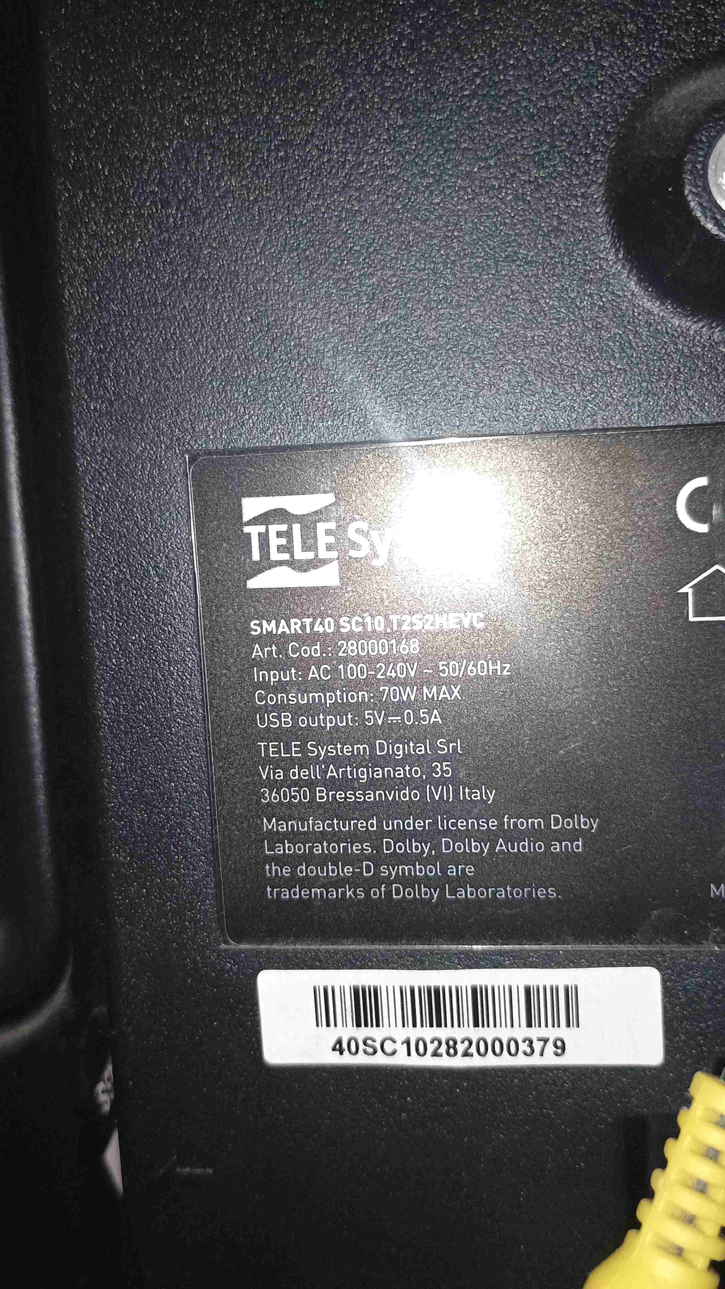 nicorica Inserito: 30 settembre Segnala Inserito: 30 settembre (modificato) Buongiorno, il mio televisore Marca Telesystem modello smart 40 SC10 T252HEVC, all'accensione rimane bloccato sulla videata Smart Android. Ho tentato un reset ma nulla da fare, ho cercato sul sito telesystem se ci fosse un firmware ma nessun file ho trovato. Qualcuno potrebbe darmi un aiuto? Avete qualche idea? Grazie per il vostro contributo. Modificato: 30 settembre da nicorica