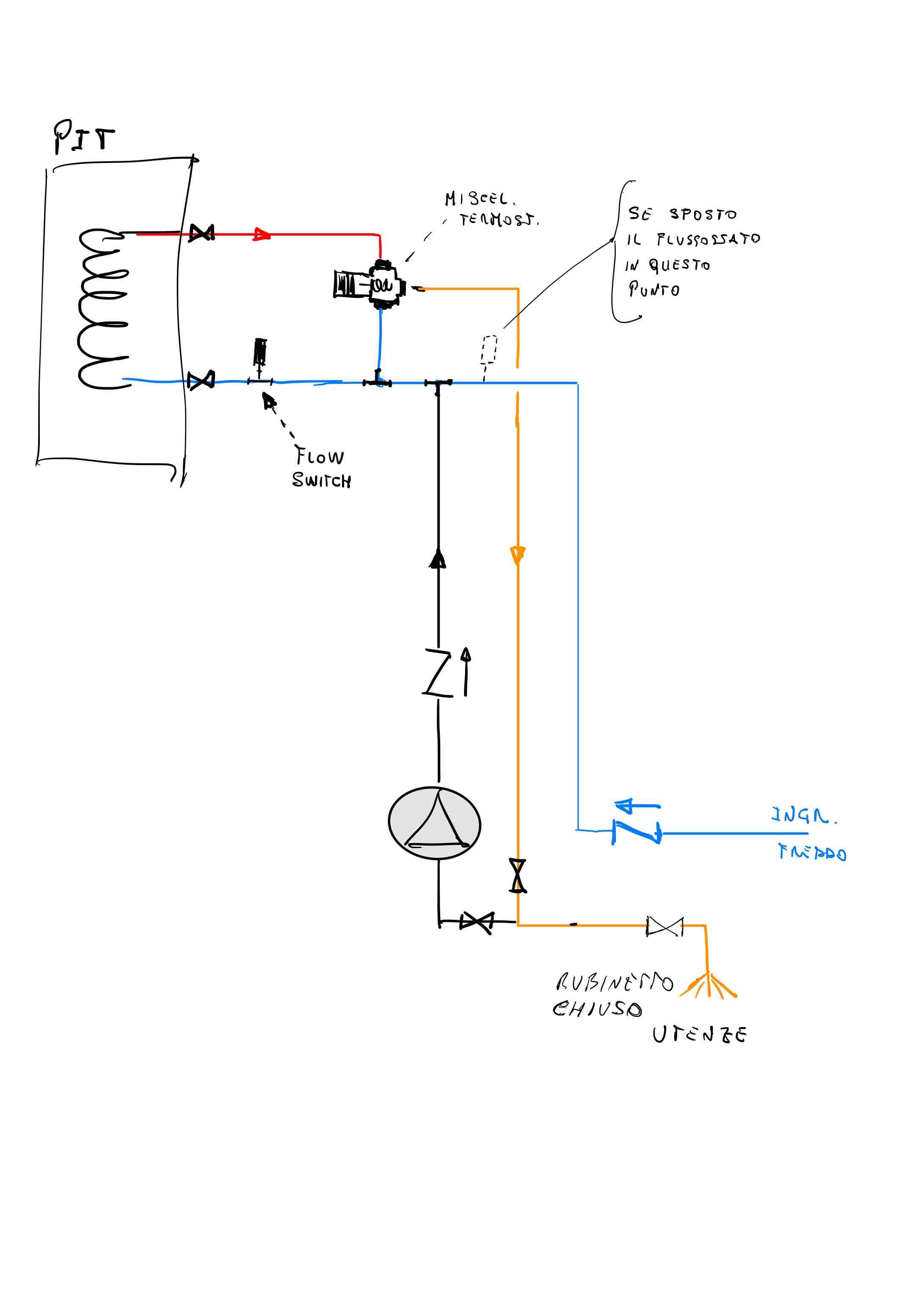 mrgianfranco Inserita: 5 ottobre Segnala Inserita: 5 ottobre (modificato) 9 ore fa, imola ha scritto: Con i rubinetti chiusi l’anello è freddo ...allora non c'è circolazione...e poi il flussostato messo in quella posizione non ha senso secondo me non verrebbe attivato solo dal prelievo di acqua ma anche quando l acqua fa il giro in tondo spinta dal circolatore!...se lo schema è quello mi sembra un po' inutile fare partire il ricircolo quando apri un rubinetto ...e come prendere la Tachipirina dopo che ti è passata la febbre!non è che il circolatore lo devi accendere da un quadretto e quel flussostato comanda lo spegnimento della PDC? Modificato: 5 ottobre da mrgianfranco
