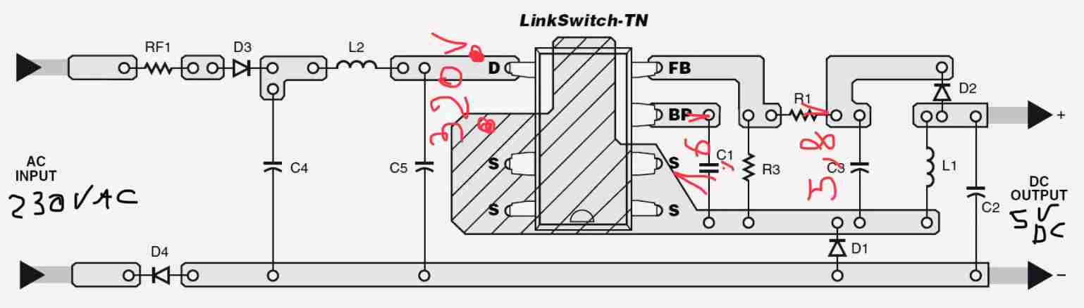 michpao Inserita: 14 ottobre Segnala Inserita: 14 ottobre (modificato) 12 ore fa, Vasile D ha scritto: Tra quali pin devo misurare( LNK) e che tensioni devo avere? Grazie Però non hai indicato la sigla completa di quello montato Circa dovrebbero essere 1,6v e 5,8v in uscita (vedi foto) e puoi misurarli sui condensatori, facendo attenzione alla tensione in entrata ci sono 320V 😬. Modificato: 14 ottobre da michpao