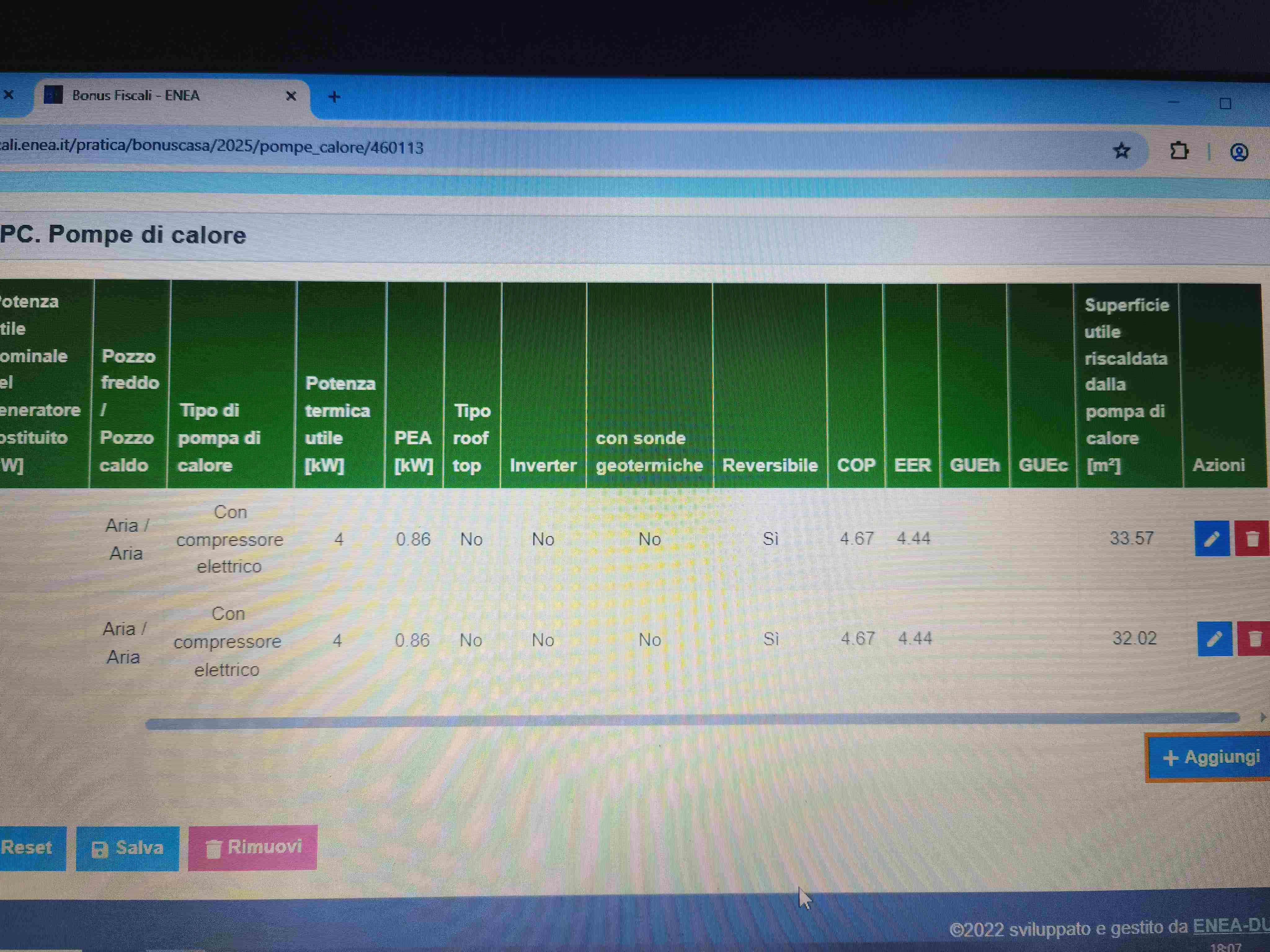 reb0000 Inserito: venerdì alle 17:25 Segnala Inserito: venerdì alle 17:25 Buongiorno. A seguito dell'installazione dei condizionatori stavo provvedendo alla compilazione della domanda ENEA ma ho parecchi dubbi e perplessità. Premetto di avere installato due motori dual che hanno singolarmente: - potenza termica utile 4kw - eer 4,44 - cop 4,67 Della potenza termica utile ho letto che devo fare la somma dei due valori, e quindi devo segnare 8kw, ma per eer e Cop non trovo informazioni. Devo fare lo stesso la somma o c'è qualche altro calcolo da fare? Grazie
