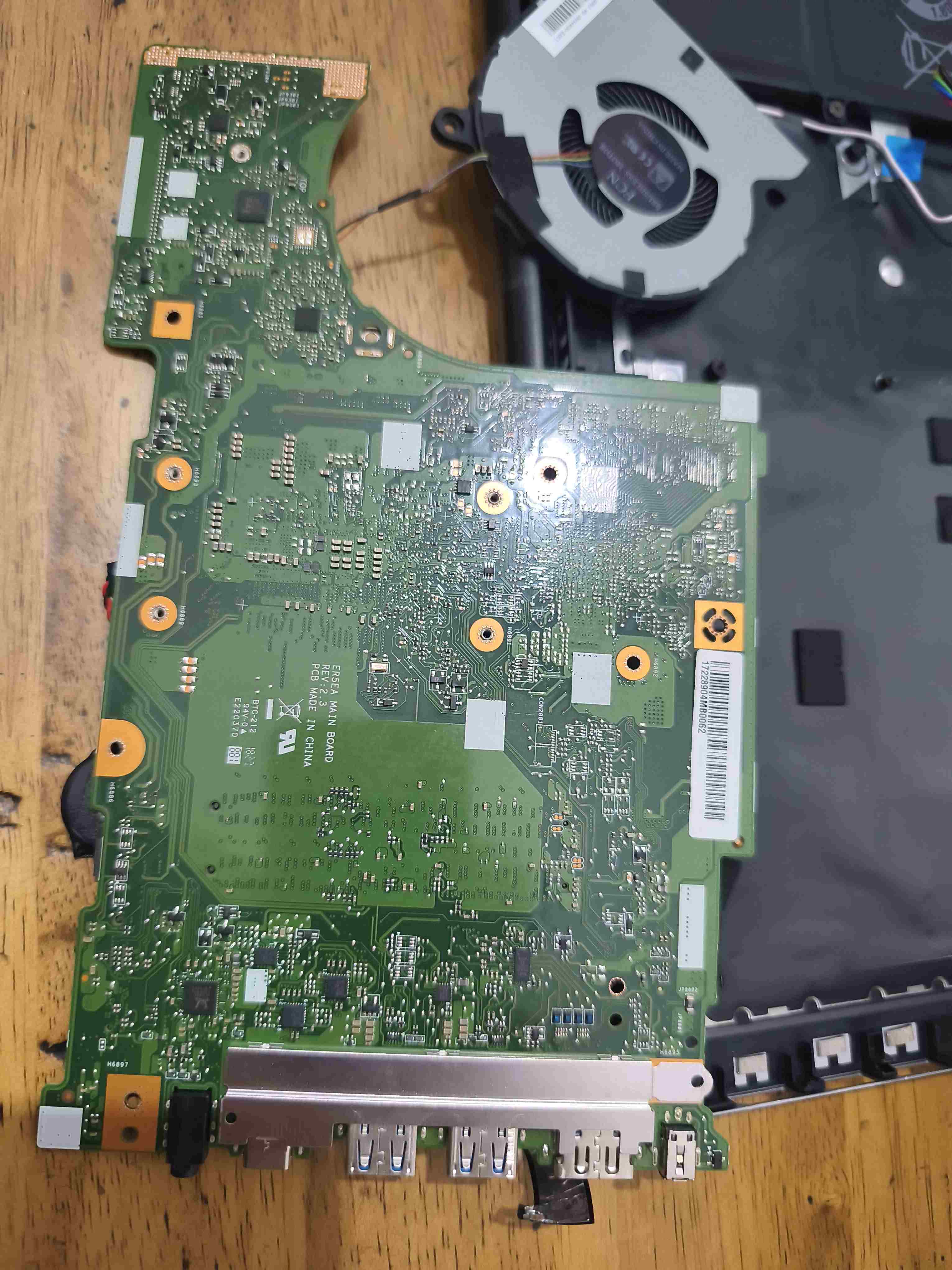 Se hai staccato tutto dalla MB (RAM, HDD/SSD e batteria) e hai verificato che l'alimentatore funziona (dovrebbe essere circa 19V DC ma verifica) rimangono solo 2 colpevoli : la CPU oppure la MB.