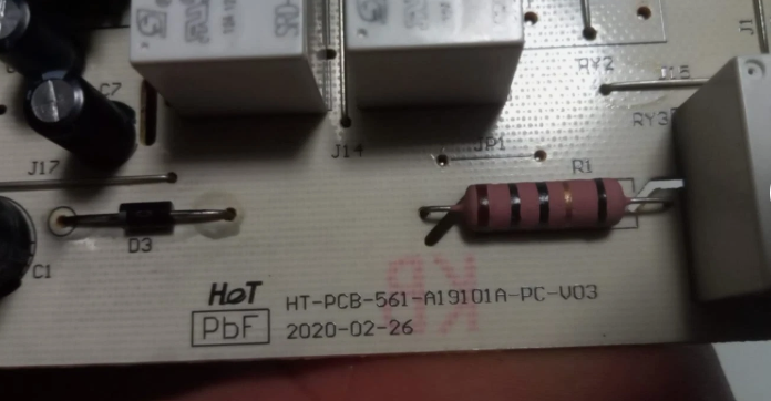 Ciao ragazzi ho sta scheda elettronica di una lavatrice marcata come da foto in cui ci sono alcuni componenti che non riesco a recuperare soprattutto la resistenza e un mosfet che evidentemente scoppiato...Dovrebbe essere un AP8012 ma vorrei qualche consiglio da voi...ma soprattutto la resistenza quella rosa in foto (foto presa da internet )che e completamente bruciata e non riesco a risalire al valore....non si capiscono bene i colori...se verde 0 nero....