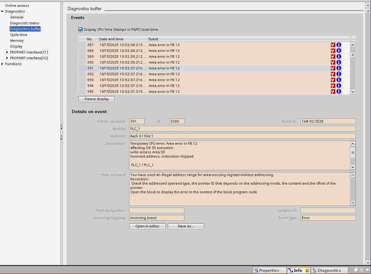 marco1278 Inserito: ieri dalle 11:14 Segnala Inserito: ieri dalle 11:14 Ciao a tutti, su un impianto ho una CPU S7-1500 1515-2PN e il programma scritto in Tia 14. Nel programma ho diverse FB che richiamano nei campi "InOut" delle UDT. La CPU genera in continuo errori nella diagnostica indicando che sta puntando ad aree di memoria non corrette. Con i colleghi ho provato a capire il problema andanod a creare una nuova FB e inserendo i parametri. La UDT_PID è lunga 128 byte. Se la richiamo in "Static" la lunghezza è corretta, mentre se la richiamo in "InOut" la lunghezza non è corretta; addirittura mette solo 6 byte. Sapete il perché? Tutto il programma richiama UDT in "InOut" e quindi la CPU continua a generare errori. Grazie a tutti per il supporto. Ciao