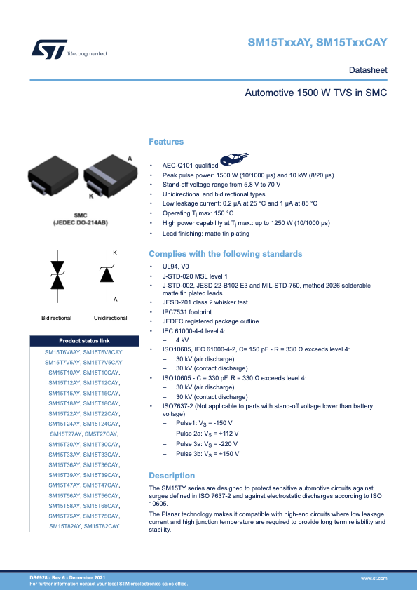 uccjo Inserita: 18 ottobre Segnala Inserita: 18 ottobre BETY = SM15T33CAY allego datasheet. Tabella 6 c'è l'equivalenza dei mark con i codici del componente