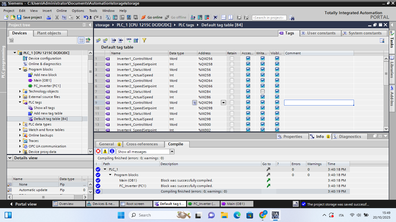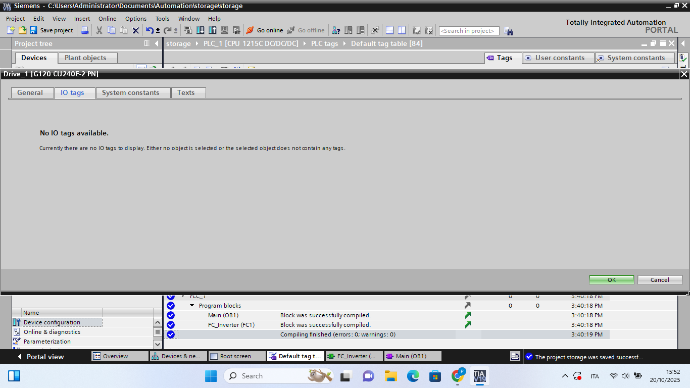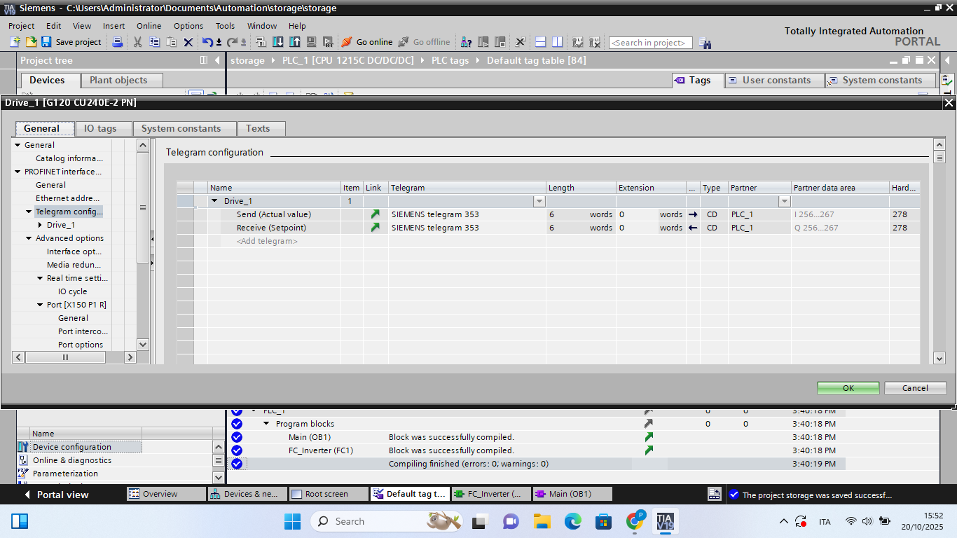 paolo_ref Inserito: lunedì alle 15:59 Segnala Inserito: lunedì alle 15:59 (modificato) Buongiorno a tutti sono Paolo un nuovo utente... ho conoscenze base per tia portal v.19 ho fatto altri progetti ma non ho mai configurato inverter g120 cu240e-2 pn e vorreì capire perchè nonostante a livello di rete profinet e global_tag "è tutto corretto" pero nella finestra i/o tag di inverter1,2,3,4,5 non vedo i tag dell'inverter ho fatto vari tentativi anche cercando di modificare "partner data area" e cosi via pero non vedo i tag e in simulazione plcsim non ho riscrontri di nessun tipo grazie Modificato: lunedì alle 15:59 da paolo_ref