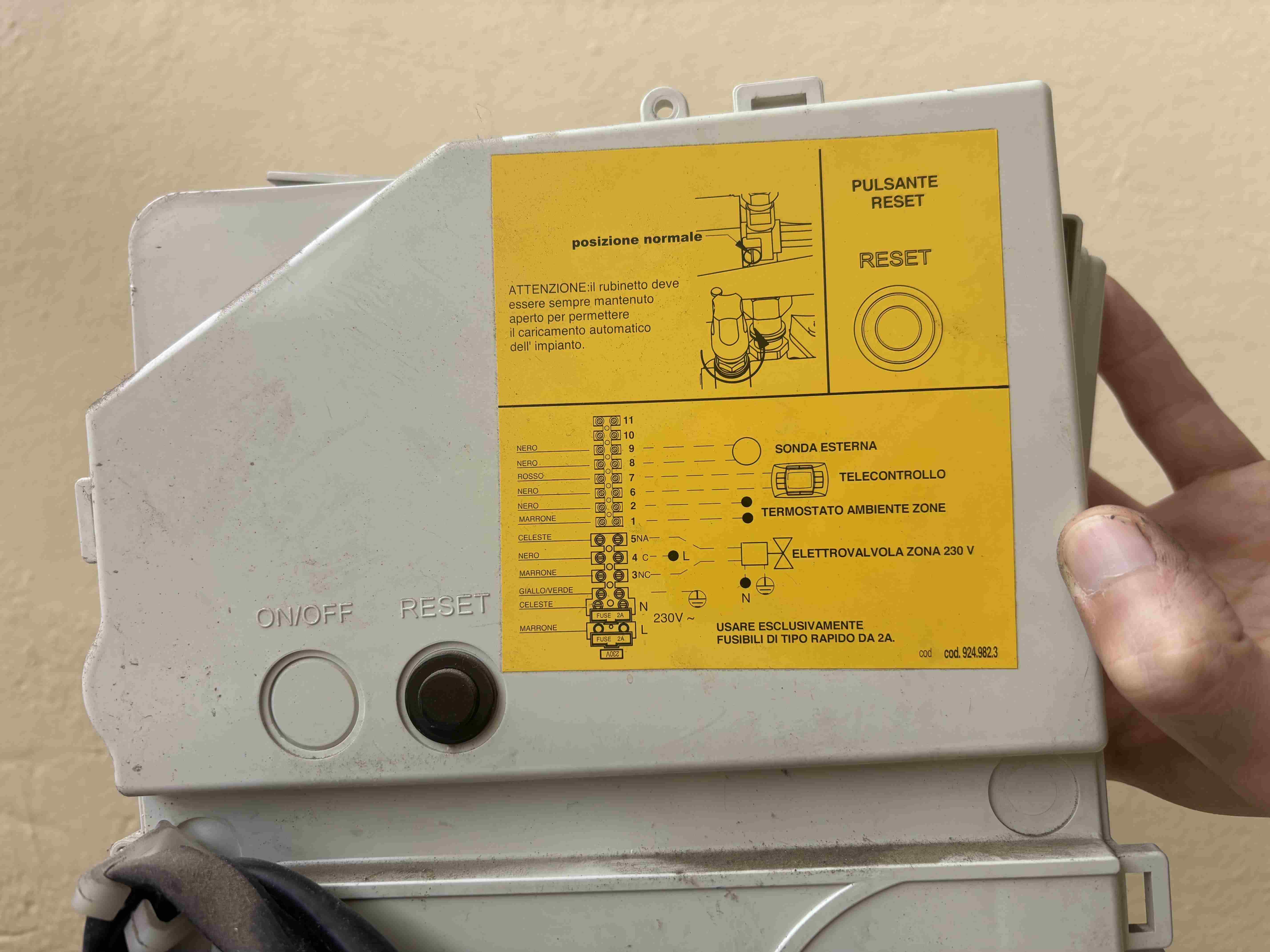 Danone88 Inserita: 10 novembre Autore Segnala Inserita: 10 novembre 41 minuti fa, Stefano Dalmo ha scritto: Lo schema parla chiaro , su m 2 Morsetti 6 e 7 devi tenere il controllo remoto E sui morsetti 1 e2 devi togliere il ponte e collegare il tuo netatmo . vedi se devi modificare dei parametri per rendere il CR solo per la gestione della caldaia e non come controllo climatico . E utilizzare il + e- termosifoni solo per il controllo della temperatura dell’acqua . Ok grazie, mi torna. Ho visto anche i parametri da modificare sul CR come dici. 25 minuti fa, Stefano Dalmo ha scritto: Dai cablaggi non si vedono le numerazioni e identificazioni dei morsetti . Come non si capisce il ponte di cui hai parlato , a cosa serve . Su 1 e 2 che io sappia quello è un contatto pulito e non dovrebbe essere connesso con altro che un interruttore . Non so perchè ma le foto si vedono male sul sito, provo a caricarle di nuovo con più qualità. 11 minuti fa, Stefano Dalmo ha scritto: Bisognerebbe sapere a cosa serve . c’è mica una valvola motorizzata ? Sull’impianto ? Non so risponderti, ma spiegherebbe perche vedo 230V 4 minuti fa, Stefano Dalmo ha scritto: Mi sta venendo un dubbio , ma fa che stai guardando la morsettiera dal lato dei collegamenti che vanno alla scheda , mentre tu devi fare i collegamenti dalla parte opposta !? No scusa non ho capito questo punto