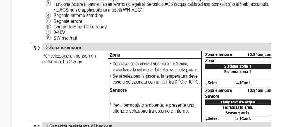 fulvio.chiappori Inserito: martedì alle 14:23 Segnala Inserito: martedì alle 14:23 Buongiorno. Ho una pompa di calore monoblocco Panasonic Aquarea mod. WH-MDC09J3E5, manuale installazione: https://www.manualeduso.it/panasonic/wh-mdc09j3e5/manuale Dovrei collegare un termostato ambiente senza relè che restituisce direttamente una fase a 230v quando la temperatura è inferiore al set point. L'utilizzo sarebbe esclusivamente per il riscaldamento. Potrei portare la fase fornita dal TA direttamente al contatto H della PdC? Quel contatto è predisposto per ricevere una tensione a 230v, giusto? Devo alimentare anche L e N oppure è sufficiente alimentare H? Per quanto riguarda il settaggio della centralina, devo fare riferimento al punto 5.2 del manuale d'uso? Allegato screenshot. Manuale d'uso completo: https://tda.panasonic-europe-service.com/docs/2z69258d04z3z40d80z6974z706466z25z5e301620d2a3e363764ebba45c0a43ebaf752313/tsn3/data/ALL/WHMDC05J3E5/OI/979512/ACXF55-26681.pdf Grazie in anticipo per il vostro aiuto