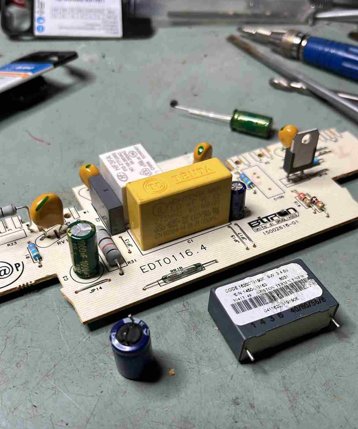 Stefano Dalmo Inserita: 2 ore fa Segnala Inserita: 2 ore fa sostituisci questi due condensatori e risolvi . condensatore in poliestere 1uF x2 275v condensatore elettrolitico 1000 uF 25 V