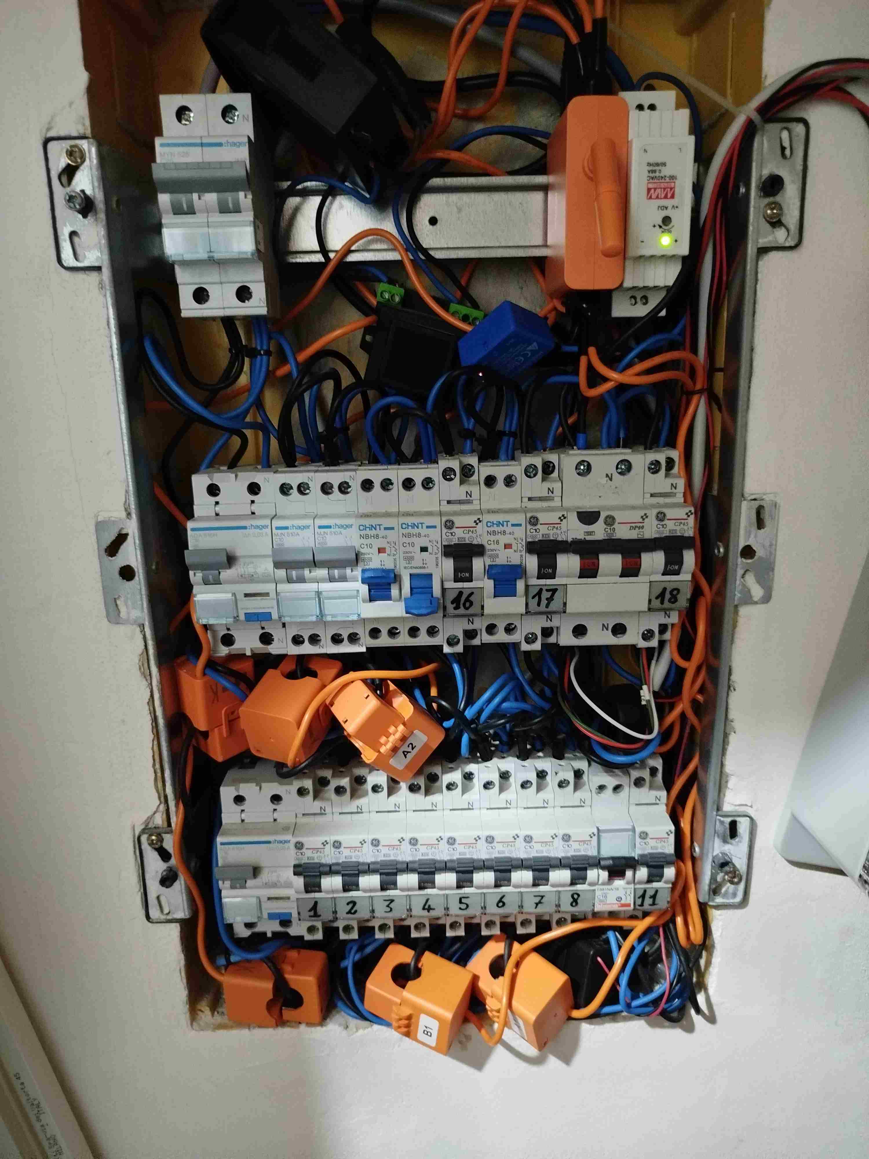 vinceg Inserito: ieri dalle 15:16 Segnala Inserito: ieri dalle 15:16 Il quadro elettrico della mia abitazione, cablato circa venti anni fa, a causa di successivi interventi, modifiche e aggiunte per via della domotica è diventato qualcosa di insicuro e caotico. Purtroppo devo evitare opere drastiche e invasive. Avrei pensato, quindi, a una soluzione che vorrei porre alla vostra attenzione: mettere un quadro a parete da tre file per 54 moduli, sovrapposto a quello esistente. Usare le barre din incassate per delle morsettiere in modo da giuntare i cavi in modo pulito e sicuro, mettere i TA all'interno del quadro incassato e fare un upgrade dei MT e MTD se necessario. Allego foto del mostro e attendo consigli.