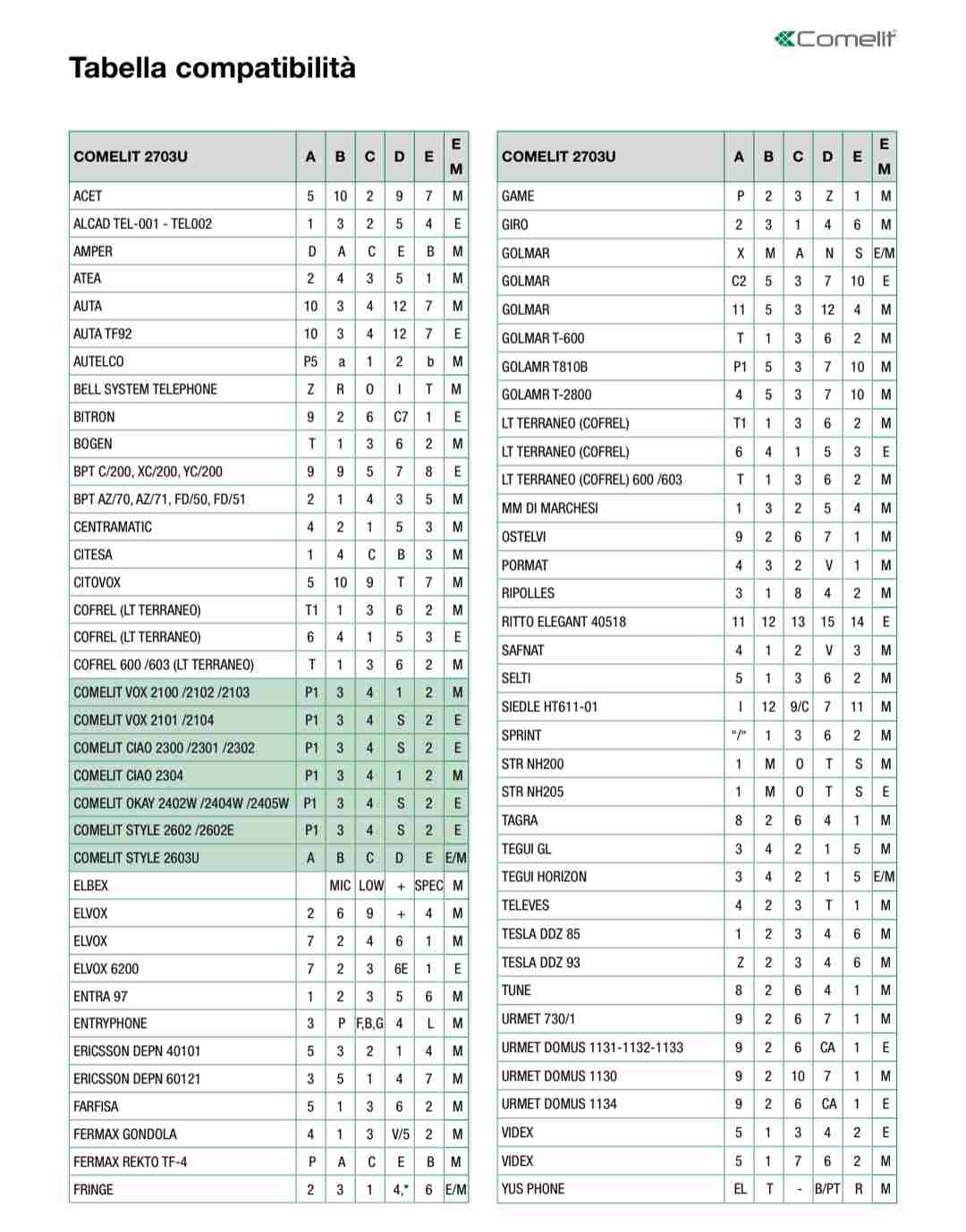 ROBY 73 Inserita: domenica alle 16:18 Segnala Inserita: domenica alle 16:18 2 ore fa, Giuseppe rc ha scritto: devo cambiare perché non suona e non si sente più, Sei sicuro di essere l'unico ad avere problemi nel condominio? 2 ore fa, Giuseppe rc ha scritto: ho la lista dei collegamenti ma non è menzionato il citofono vecchio. C'è c'è, basta seguire il classico collegamento ELVOX, comunque così: ELVOX 900-902 Comelit 2703U - morsetto 1 = morsetto E = Altoparlante = filo rosso 1; - morsetto 2 = morsetto B = Microfono = filo rosso 2; - morsetto 3 = morsetto C = Comune = filo blu; - morsetto 6 = morsetto D = Ronzatore = filo giallo / verde; - morsetto pulsante a destra = morsetto A = Apri cancello = filo grigio. Ricordati di controllare che il selettore SW2 sia su "M" e che perché funzioni completamente devi chiudere il coperchio e agganciare la cornetta Facci sapere i risultati
