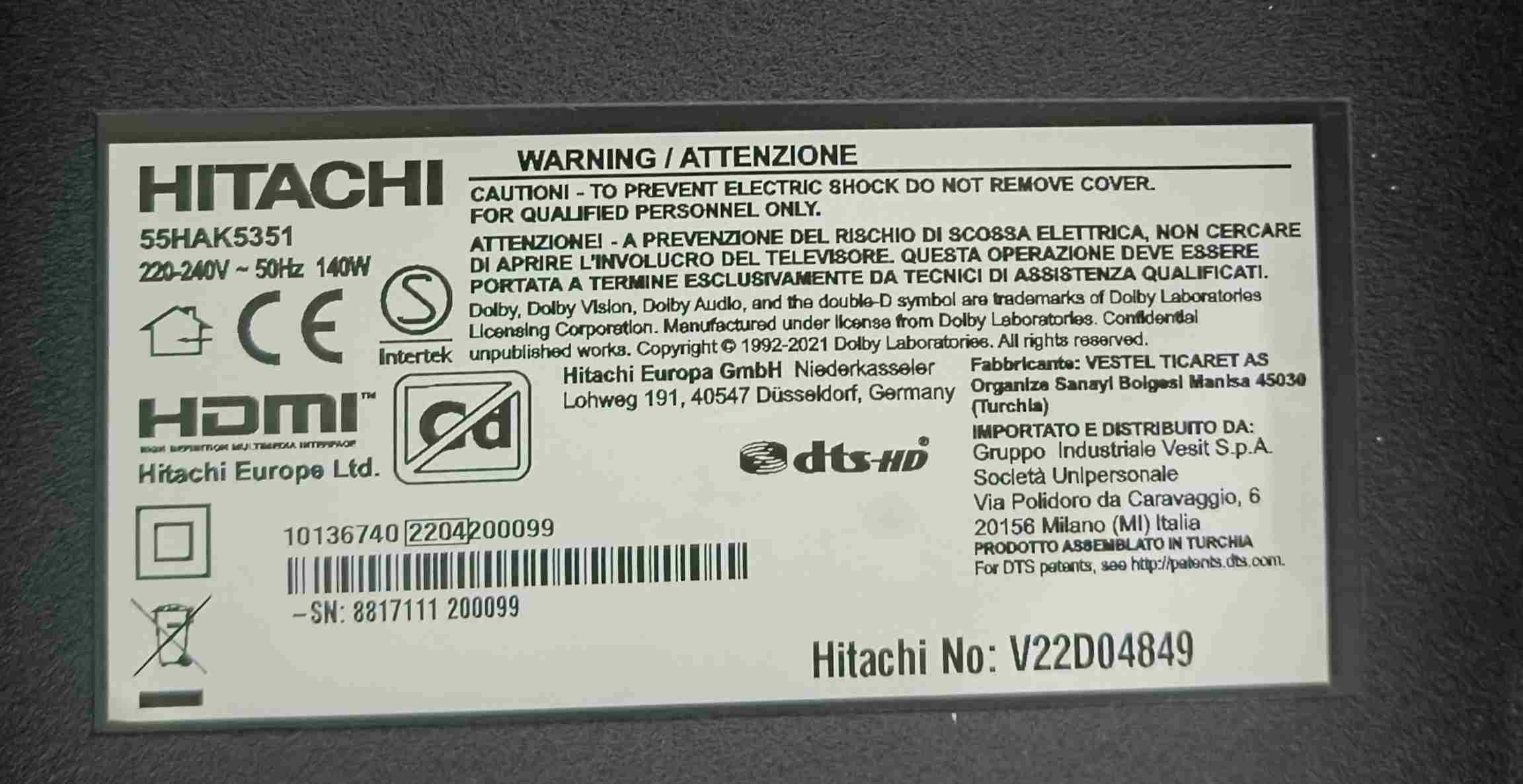narutom Inserito: 5 gennaio Segnala Inserito: 5 gennaio Salve a tutti, Cerco urgentemente il software completo (da caricare tramite USB con file .pkg) per la mia TV Hitachi 55HAK5351. Dopo un tentativo di aggiornamento errato, lo schermo appare diviso a metà (problema 2DUHD). Dati tecnici: Modello: 55HAK5351 Codice Prodotto: 10136740 Mainboard: 17MB170E Qualcuno ha il firmware originale o i file PQ per risolvere il problema del pannello? Grazie mille in anticipo per l'aiuto!