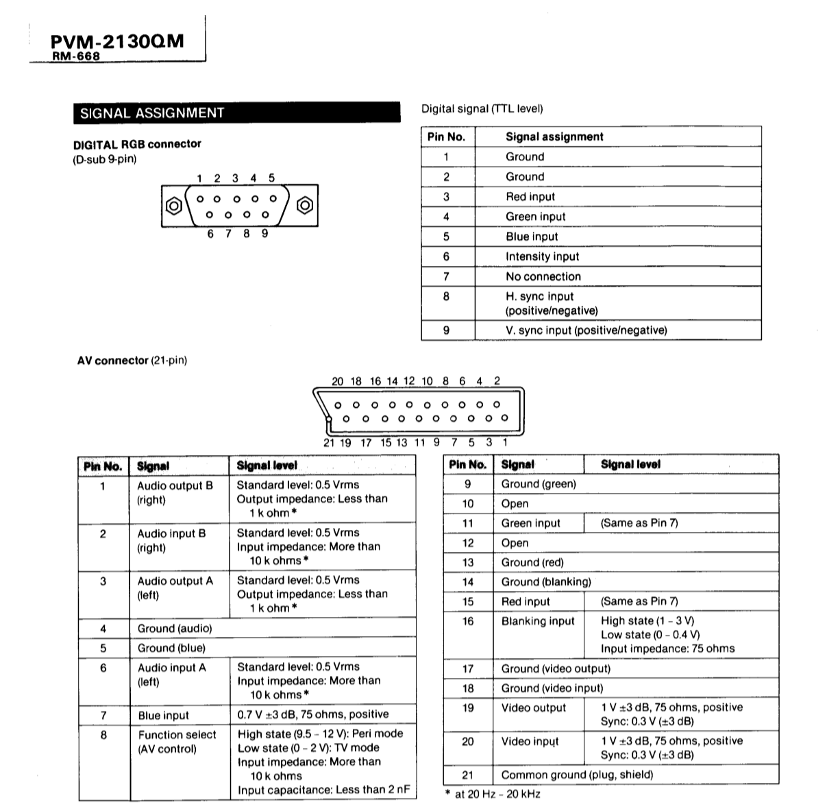 Dany_1978 Inserito: 16 ore fa Segnala Inserito: 16 ore fa Buongiorno, sono nuovo nel forum, non sono un tecnico ma vi inoltro questa domanda, sperando che possiate venirmi in aiuto. Da alcuni giorni sono in possesso di un Sony PVM2130QM; nella parte posteriore è presente un ingresso D-Sub a 9 PIN denominato Digital RGB (vi allego le foto). Attualmente utilizzo il monitor in ambito reteogaming tramite SCART... ma vorrei provare ad utilizzare quel connettore un po' per curiosità (forse migliora ancora di più la qualità dell'immagine?) e soprattutto mi permetterebbe di effettuare la centratura dell'immagine in orizzontale senza dover aprire lo chassis (3a foto). Qualcuno ha mai provato questo ingresso? Esiste un adattatore D-Sub 9 PIN/SCART? Grazie in anticipo per le risposte e scusate per eventuali errori ma non sono un tecnico, solo un appassionato.