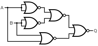 Livio Orsini Inserita: 24 settembre 2012 Segnala Inserita: 24 settembre 2012 (modificato) EXOR, o OR esclusivo, o somma disgiuntiva ha una logica contraria all'OR. Con l'OR si forzano gli "1", perchè basta avere un solo ingresso a "1" affinchè l'uscita sia a "1"; similmente il NOR forza gli "1", ma l'uscita è negata quindi un solo ingresso ad "1" per avere l'uscita a "0". Con l'EXOR si forza la diversità tra gli ingressi; infatti basta che un solo ingresso sia di valore differente dagli altri n ingressi per avere l'uscita a "1". A titolo di esempio guarda questo data sheet. Questo è uno schema per realizzare XOR tramite NOR; quest'altro è uno schema per realizzare XOR tramite NAND, dalla tabella della verità allaegata al'immagine puoi capire più facilmente il funzionamento di un XOR (XNOR) Modificato: 24 settembre 2012 da Livio Orsini